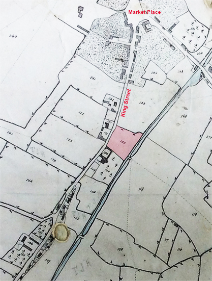 In the tithe records, John Nash was leasing the premises of a house, shop and garden from the estate of the late Bruges. Indicated in red is the area where this property was located (amongst several others in the same area). Included in this same area is the King Street Tollhouse (which is still standing).